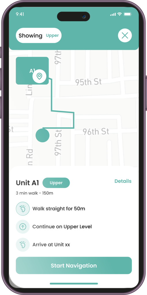 Locate any unit instantly and get clear walking directions—whether it’s on the upper or lower level. A smarter way to explore your community.